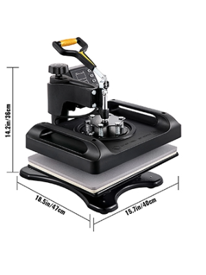 Термопресата е оборудвана с дигитален контролен панел, позволяващ точно регулиране на температурата и времето. Горната плоча се върти на 360°, което улеснява работата и минимизира риска от изгаряния. Уредът гарантира равномерно нагряване и дълготрайни резултати при всеки печат.