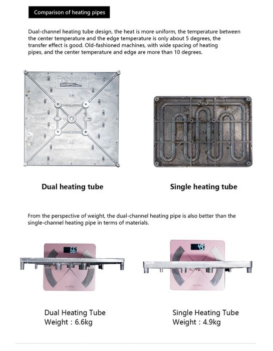 Clothes heat press machine with double heating tube improved temperature consistency across the pressing surface. Heat press machine use Anti-scalding plastic cover and thickness asbestos insulation , Heat press machine for clothes have suction cup feet for added stability. .our flatbed machine add a new spring loaded top arm which improves the ability to apply uniform pressure during operation.