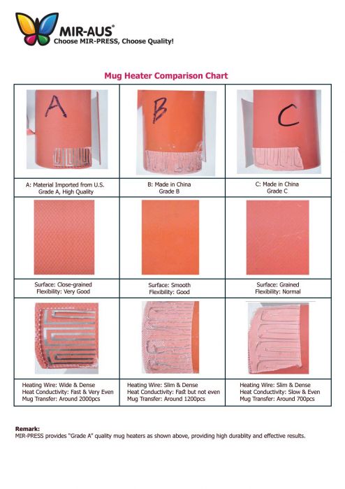 Най-значимият актив на тази термопреса са използваните нагревателни елементи. Материалът, от който са направени, е произведен в САЩ. За разлика от конвенционалните елементи с куп огънати проводници, тези маншети са направени с предварително оформена матрица от плоски стоманени проводници. Това решение осигурява не само по-добро разпределение на топлината, но и два до три пъти по-дълъг експлоатационен живот.