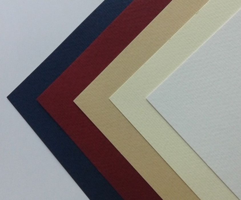 Непромазани хартии с различен фин релеф в цветове, вариращи от снежно бяло до шамоа.