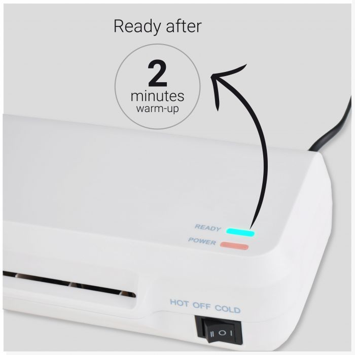 Готов за употреба само за 2 минути и ламинира до 125 микрона фолио.