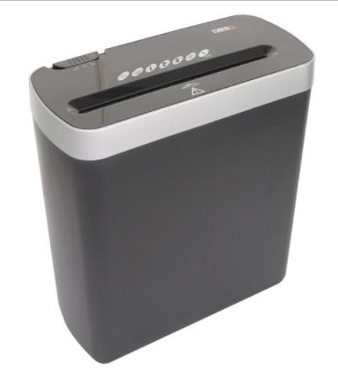 Черен шредер за хартия с гланцово покритие. Компактен дизайн, с високо ниво на сигурност, подходящ за унищожаване на поверителни документи.
