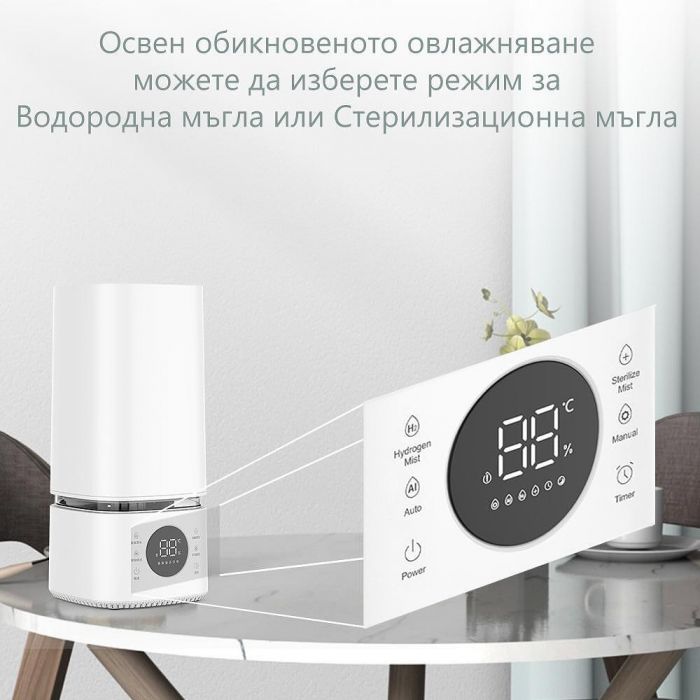 Режими: Стандартно овлажняване, Водородна мъгла, Стерилизационна мъгла