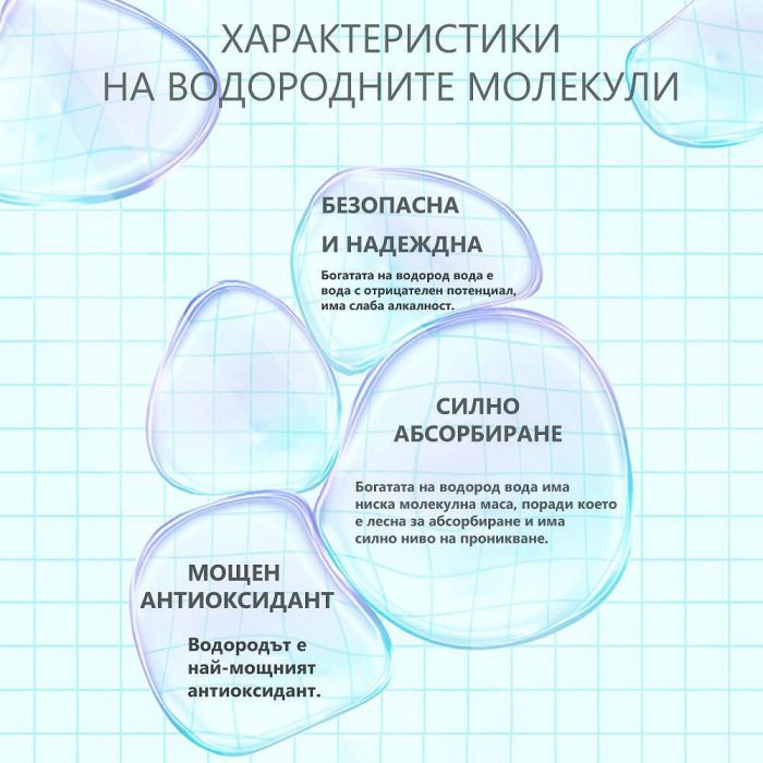 Водородът е най-мощният оксидант, най-лекият елемент и поради това се намира на първо място в Менделеевата таблица. Богатата на водород вода има високо ниво на абсорбиране и поради това може лесно да проникне в тялото и да упражно своя антиоксидантен ефект. Чрез овлажнителя BREEZE можете да си осигурите тихо водородно разпръскване и "SPA" изживяване за Вашето тяло!