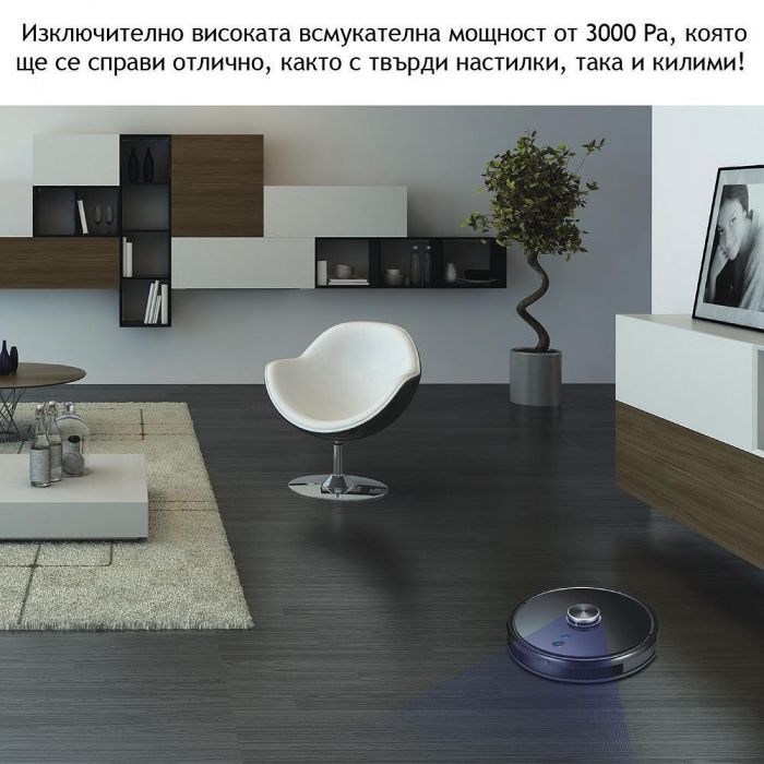* 360° detection Laser radar, LDS + SLAM algorithm - Безупречна навигационна система с лазер, който се върти на 360 градуса и "усеща" всички препятствия и прегради, така че предварително да си изгради най-ефективния маршрут за почистване.